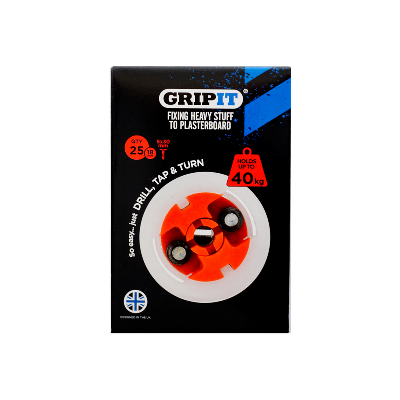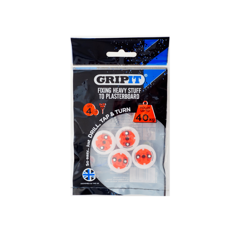 Just one Gripit Red holds up to 40KG. To install, you will require an 18mm drill bit.