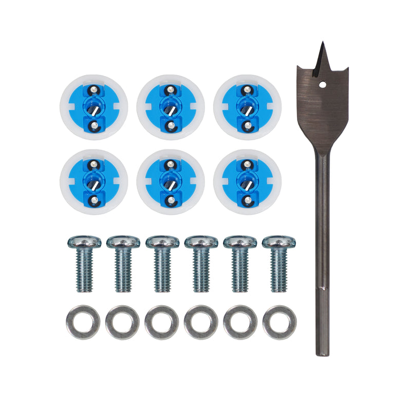 The Gripit TV Kit contains 6 x Gripit Blue plasterboard anchors, 6 x locking washers, 6 x flat washers, 6 x M8x30mm bolts, and even a 1" / 25mm drill bit.